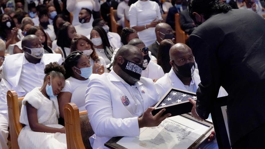 Dozens of Floyd's family members, most dressed in white, were led into the sanctuary by the Rev. Al Sharpton, who delivered the eulogy.