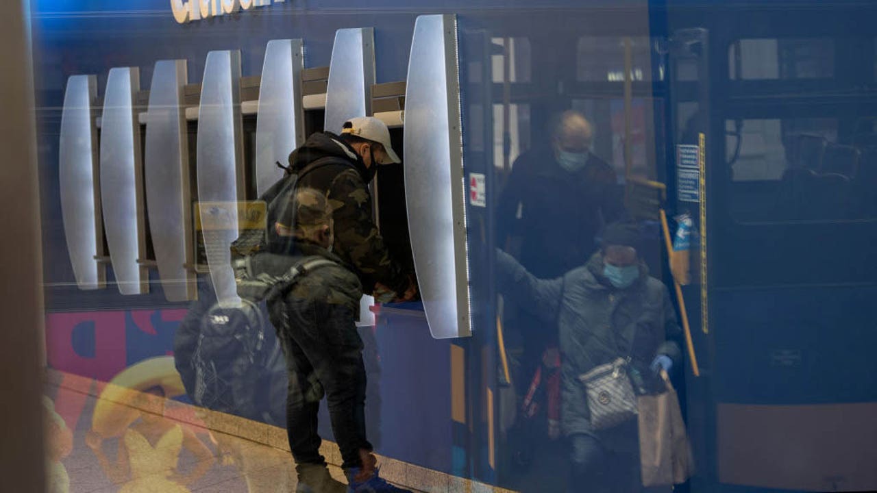 A man wearing a protective mask uses an ATM amid the coronavirus pandemic on April 17, 2020 in New York City. (Photo by Alexi Rosenfeld/Getty Images)