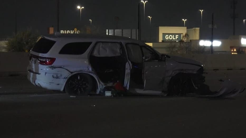 Police said a Dodge Durango struck a wall and became disabled, coming to a stop in the roadway with two occupants inside.