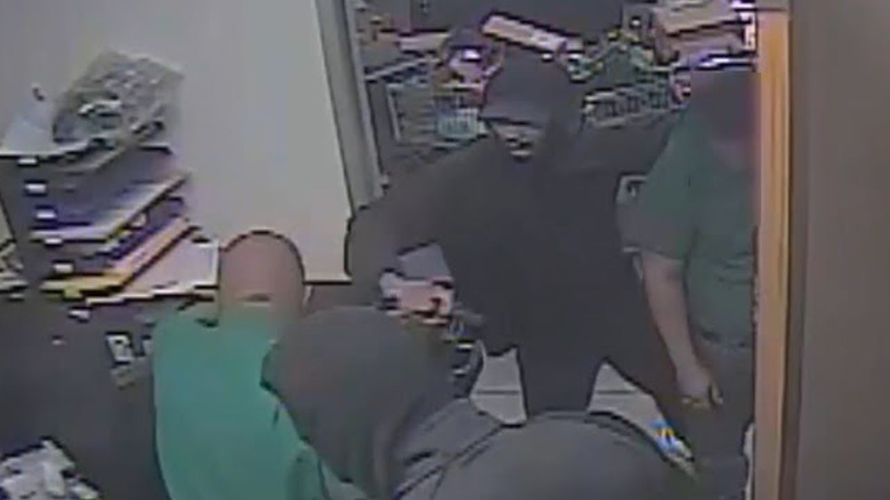While the employee was opening the cabinet, police say one of the suspects struck the employee in the head with the gun, causing him to fall to the ground. During the robbery, one of the suspects reportedly fired his weapon once into the ceiling.
