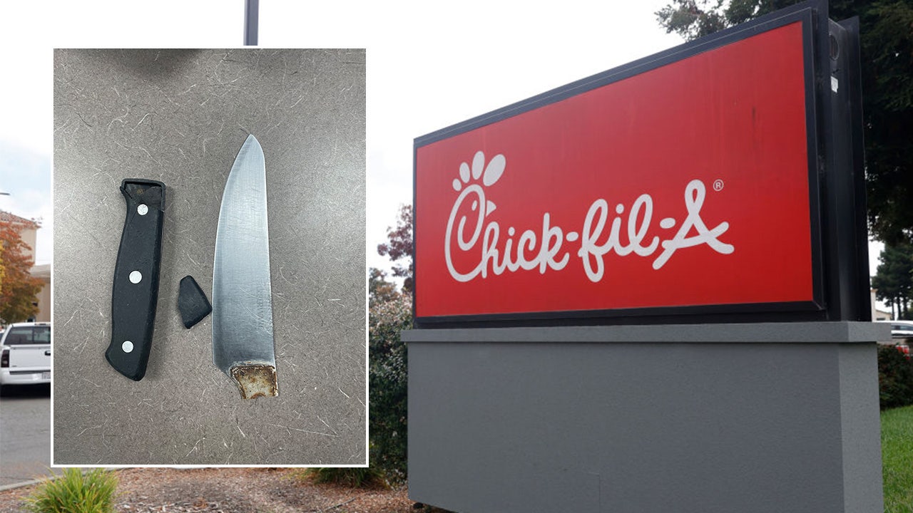 FILE - A photo of the broken knife recovered from the incident where two individuals robbed a victim of their phone at a Chick-fil-A restaurant in Stafford, Va. (Stafford County Sheriff’s Office/Justin Sullivan/Getty Images)
