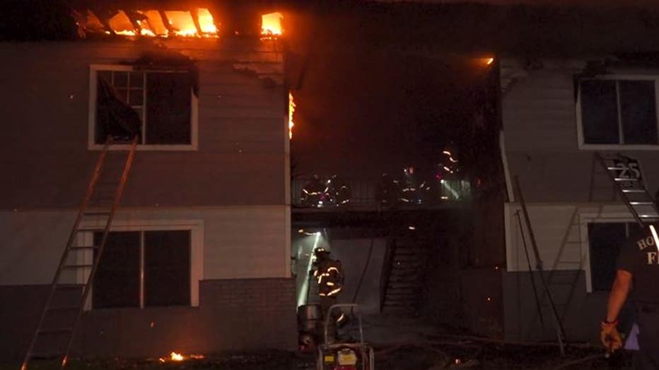 HOUSTON - Officials were called out to southeast Houston overnight Sunday after an apartment complex caught fire.