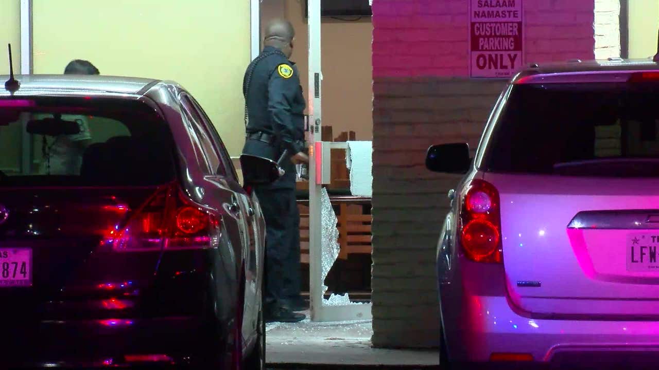 The restaurant had just closed when the men forced their way into the restaurant by shooting through the glass door and then took money from the register, authorities say. The men then went into a private game room in the back, but the patrons had already locked themselves in a different room.