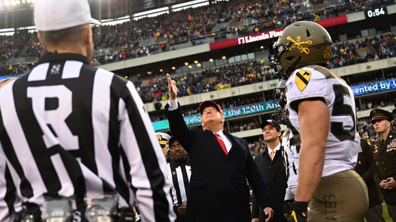 PHILADELPHIA (AP) - President Donald Trump used his appearance at the annual Army-Navy football game to pitch to the players an administration policy change that clears the way for athletes at the nation's military academies to play professional sports after they graduate and delay their active-duty service.