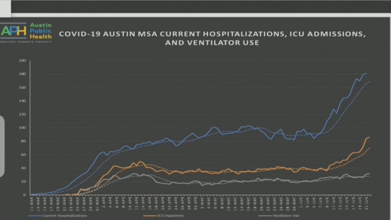 AUSTIN, Texas - In a Travis County Commissioners Court briefing, Dr. Mark Escott said the coronavirus caseload and hospitalizations in Austin-Travis County are becoming more of a concern.