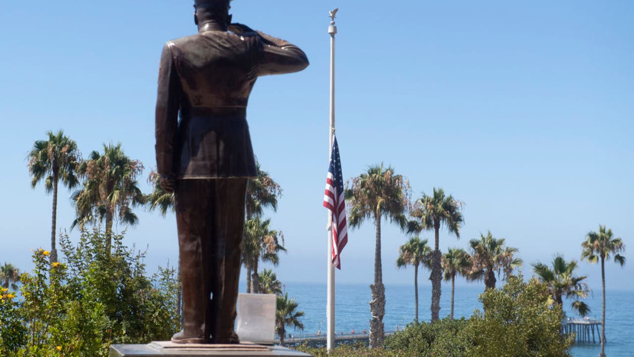 SAN CLEMENTE, CA - JULY 31: The U.S. flag was lowered to half-staff at Park Semper Fi in San Clemente, CA on Friday, July 31, 2020. A day earlier one Marine from Camp Pendleton was killed and several remained missing after an accident during training