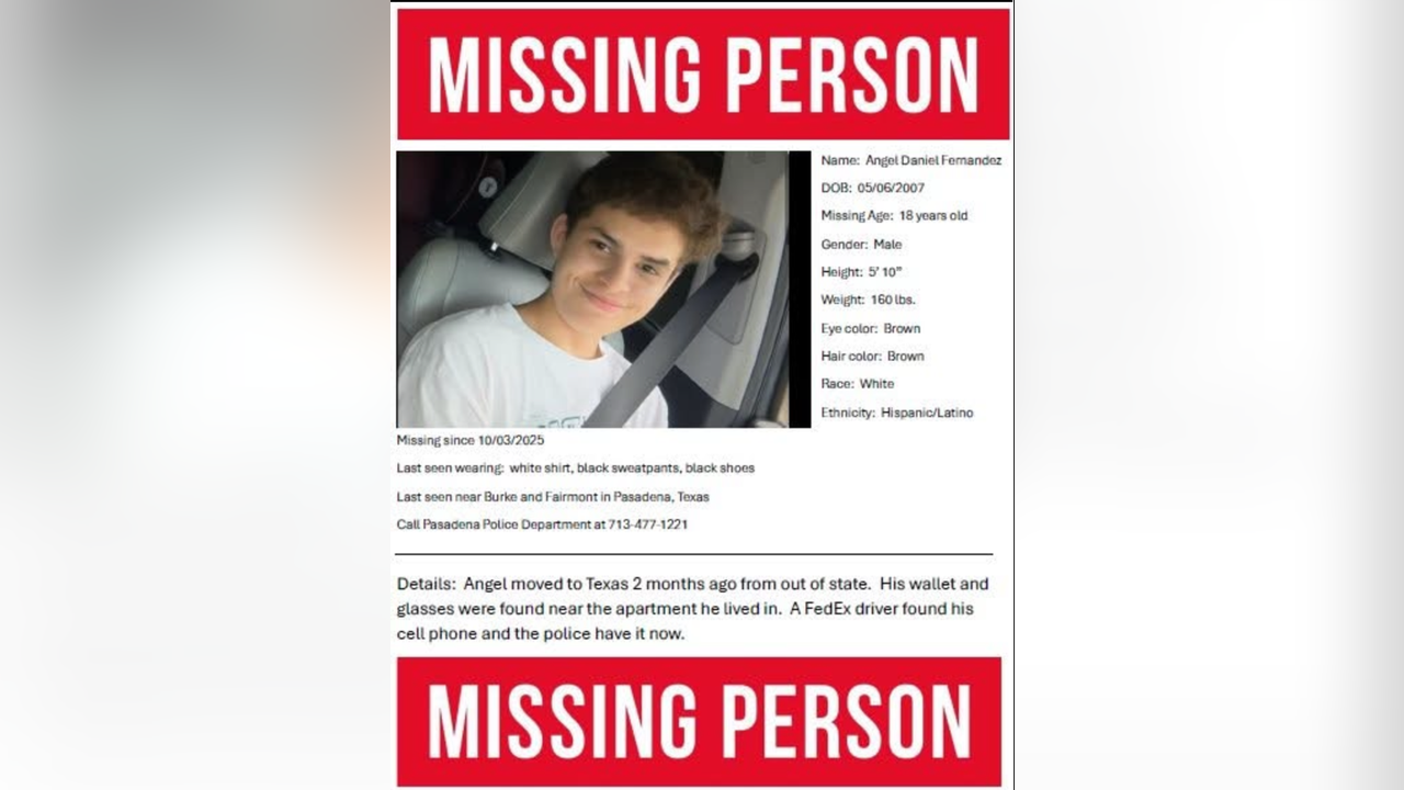 According to the Pasadena Police Department, 18-year-old Angel Daniel Fernandez, was last seen near Burke and Fairmont in Pasadena, Texas.