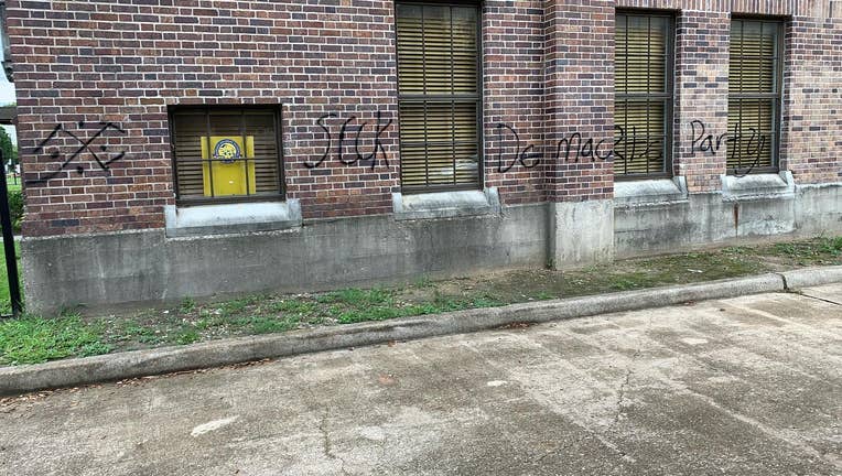 The building had been vandalized with what appears to be a swastika symbol and the words “Sucks Democratic Party,” according to a Facebook post by Desmond Bertrand-Pitts, the museum’s CEO.