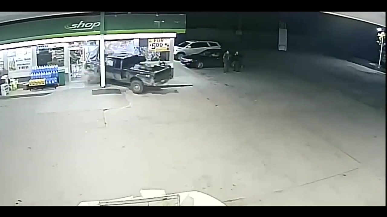 In the video, you can see the F-150 plow through the front of the BP on Ortonville Road in Brandon Township.