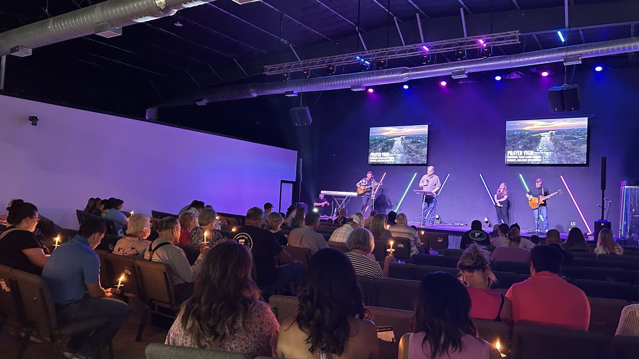 The community gathered at Freedom Church for a public vigil to show solidarity and support for those affected by the recent floods in Central Texas. The July 4th flooding in Kerr County has resulted in at least 129 deaths, with recovery operations ongoing.