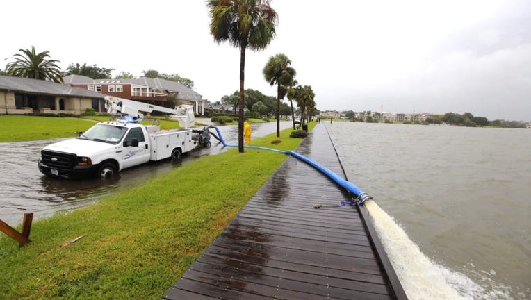 A worker pumps water out of a flooded street in the Houston area after Hurricane Harvey caused massive flooding on Aug. 26, 2017. (Photo: Michael Stravato for The Texas Tribune)