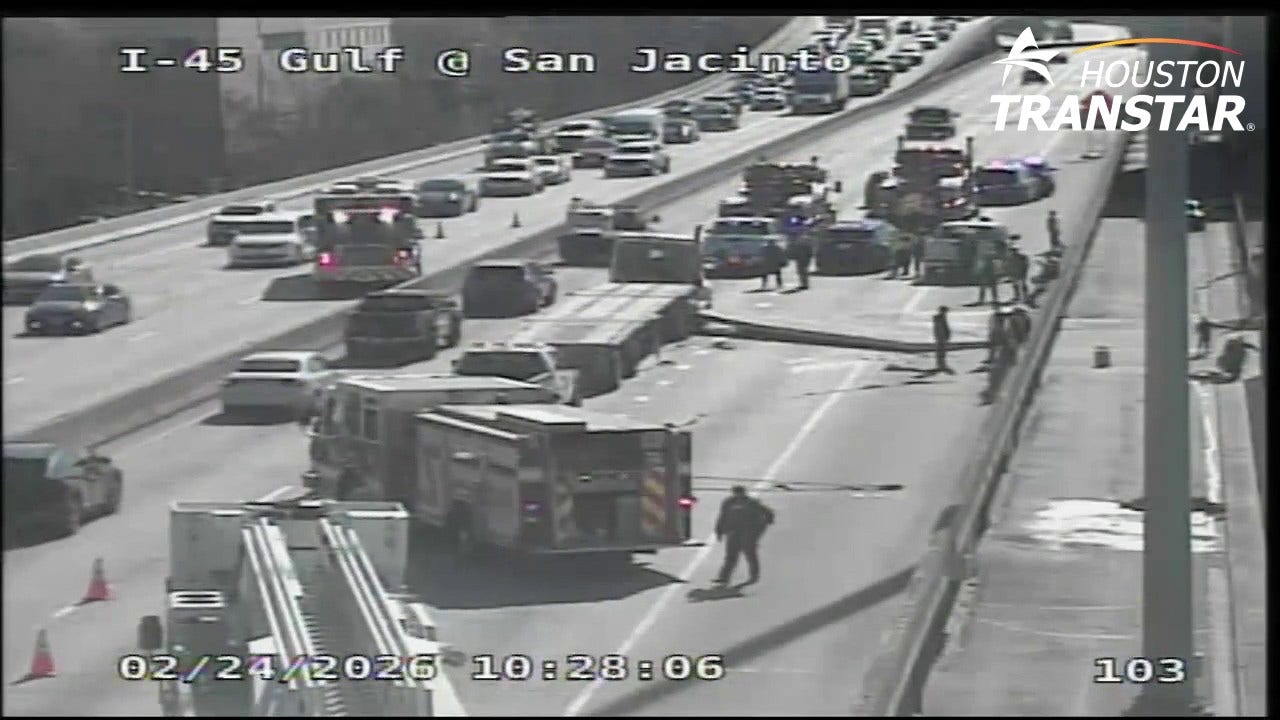 Downtown Houston traffic blocked at I-45, San Jacinto after lost load