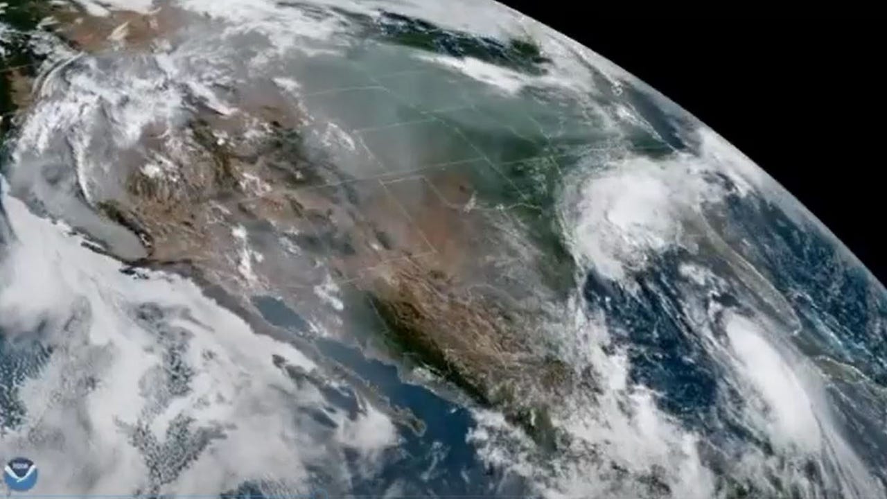 Video from NOAA’s satellite Instagram account showed hurricane clouds on Aug. 25 as taken from the GOES-West satellite.NOAA wrote on the post: “This #ImageOfTheDay from the GOES-West satellite, captured yesterday (Aug 25), shows not only the vast extent of the wildfire smoke in the west, but Marco’s remnants as well as Laura in the Gulf of Mexico.”