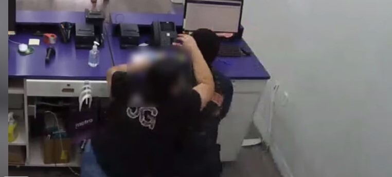Initially posing as a customer, the man walked behind the store counter, shoved the employee aside, and took money from the cash register.