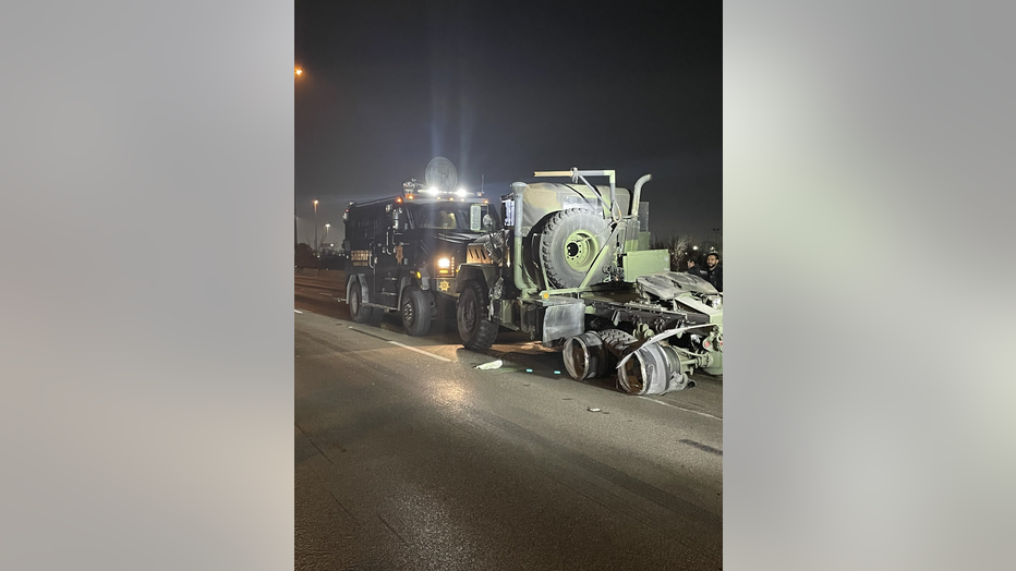 Authorities say EMS was called for one civilian who was reportedly injured in the hit-and-run.
