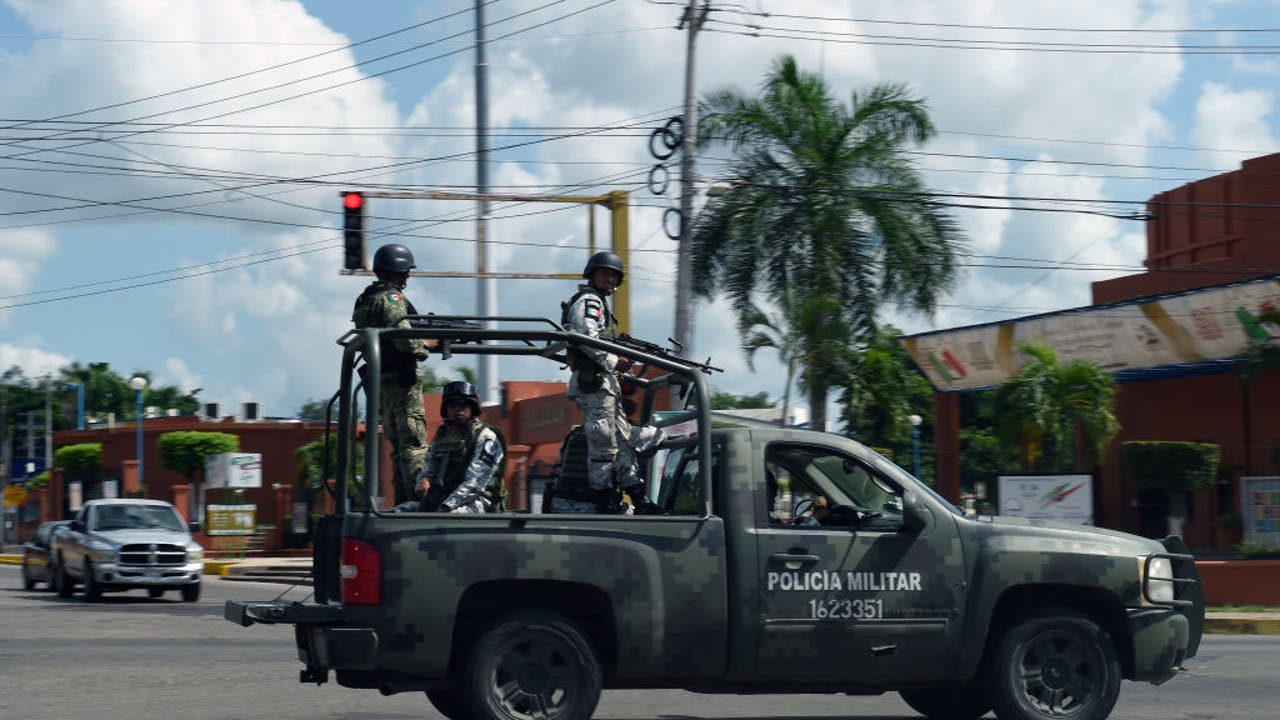 Members of the National Guard patrol a street in Culiacan, Sinaloa state, Mexico, (Photo by ALFREDO ESTRELLA / AFP) (Photo by ALFREDO ESTRELLA/AFP via Getty Images)