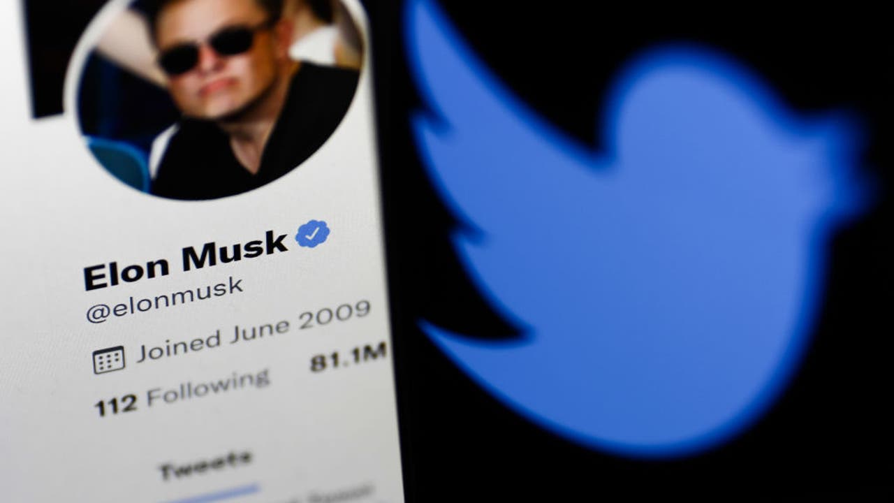 Elon Musk's Twitter profile displayed on a computer screen and Twitter logo displayed on a phone screen are seen in this illustration photo taken in Krakow, Poland on April 9, 2022. (Photo by Jakub Porzycki/NurPhoto via Getty Images)