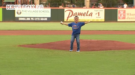 Enkyboy Brice Gonzalez throws first pitch Colon Cancer Awareness Night at Sugar Land Space Cowboys game