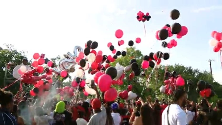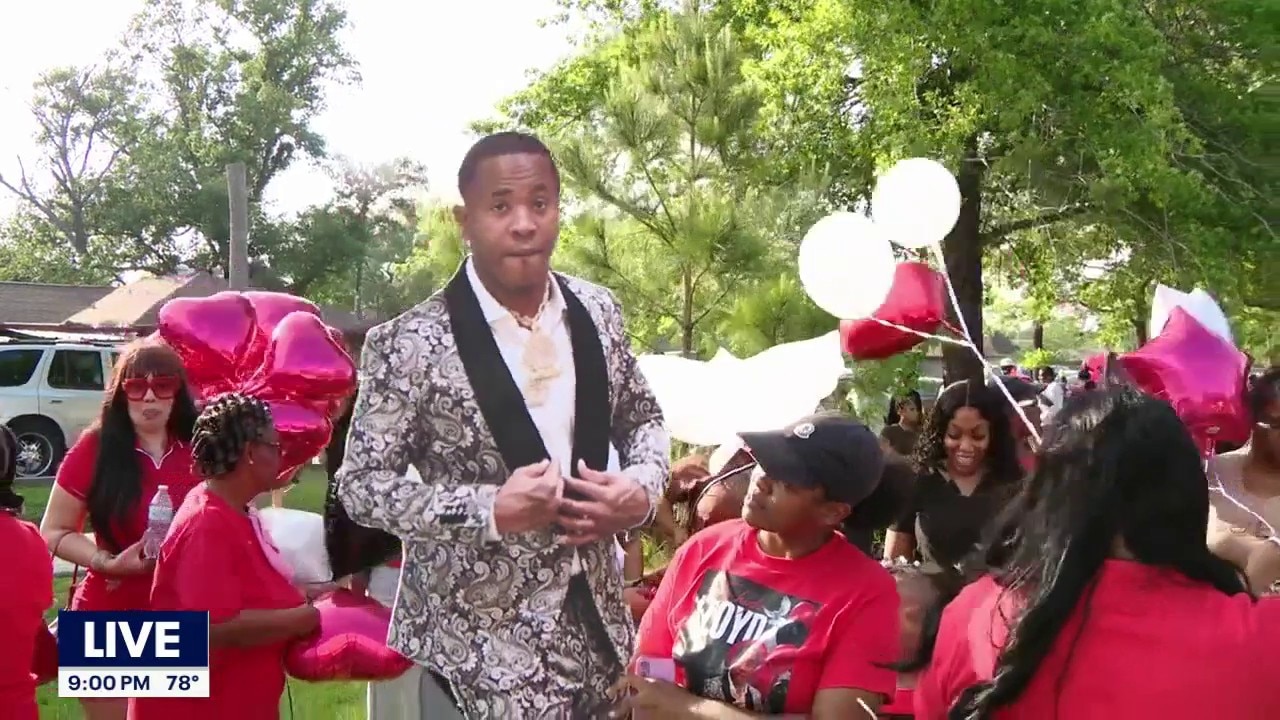 Houston police are still searching for a suspect after Floyd Washington was shot and killed while sitting in an SUV near Laura Koppe Road and Bertwood Street. His family held a balloon release and is asking anyone with information to come forward.