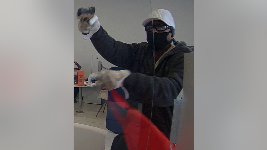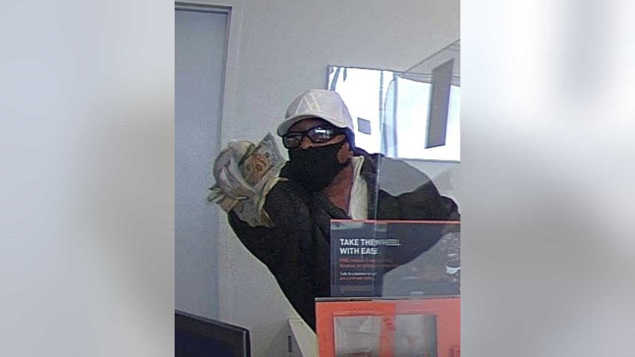 The suspect is described as a Black male with a pointy nose in his late 30s to 40s, 5'6" to 5'9" tall, about 180 pounds. He was wearing a white baseball cap with the letters ‘AX’ embroidered on the front, gloves, sunglasses, a black face mask, and a thin black jacket with fleece collar.