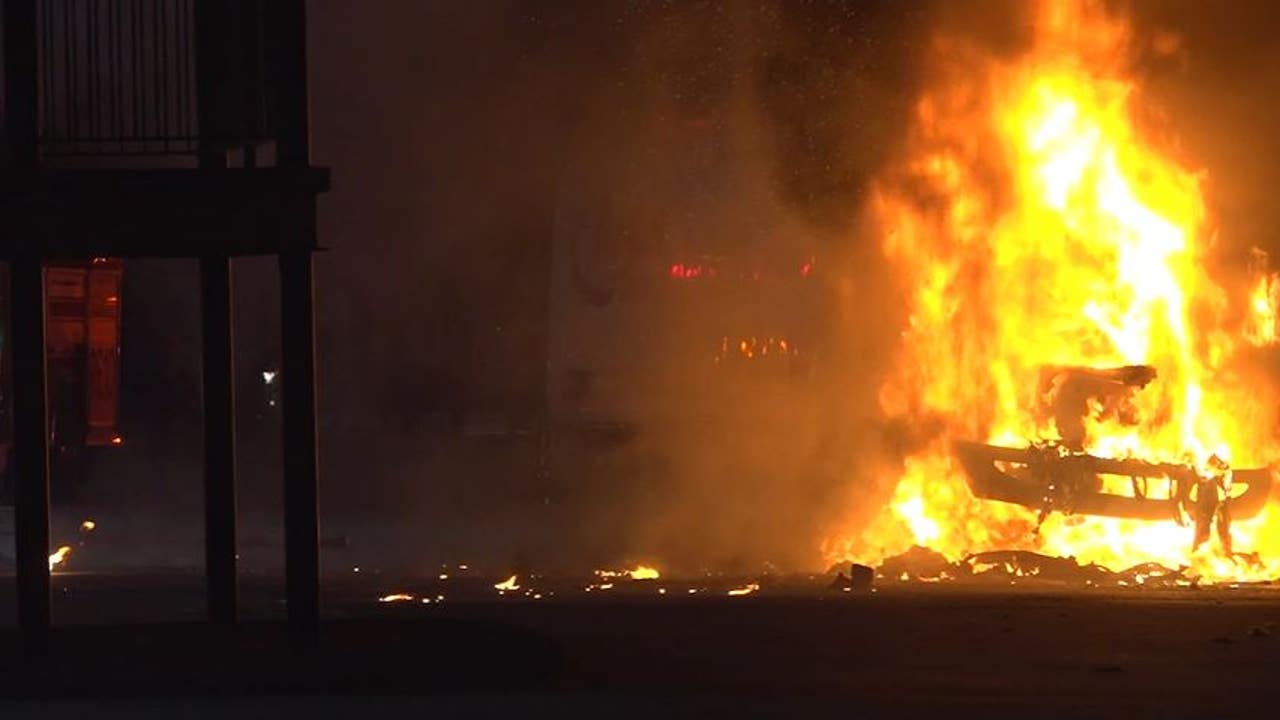 Flaming truck explodes in west Houston shopping center parking lot: video