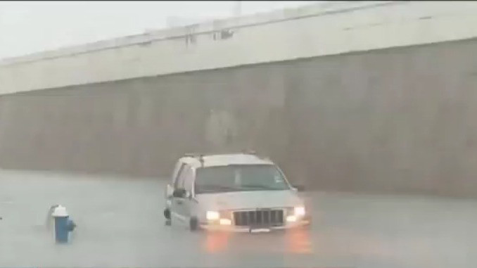 Jeep trapped in Houston floodwaters during severe weather