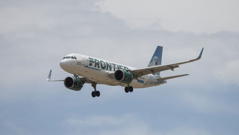 A Frontier Airlines flight prepares to land at Denver International Airport in Denver, Colorado, US, on Wednesday, June 29, 2022. Spirit Airlines Inc. stood by a takeover bid from Frontier Group Holdings Inc. even after rival suitor JetBlue Airways C