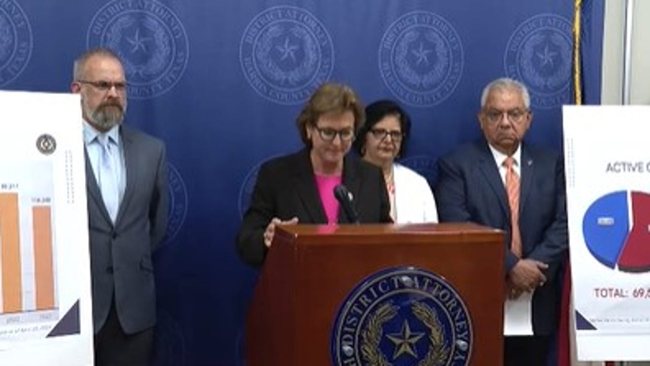 Ogg says through a combination of staff overtime and Herculean commitment, the total case backlog has been reduced by 21 percent from 145,000 in June 2021 to 114,000 on Wednesday, with 119 murders and capitol murders cleared this year alone.