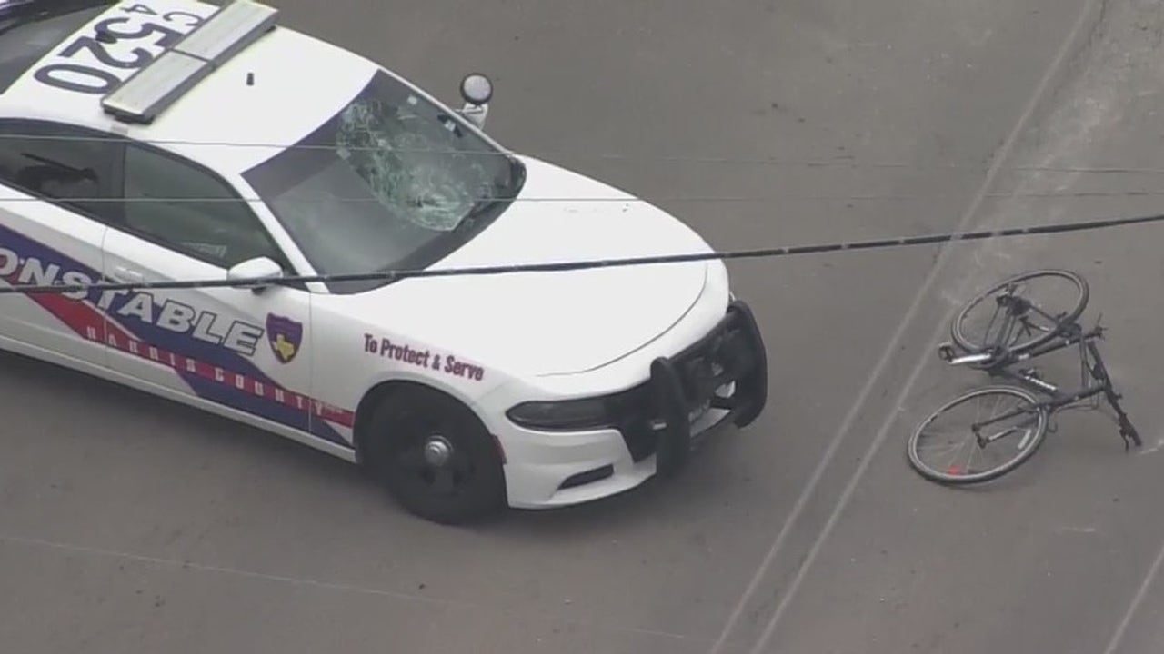 Houston - A Harris County Constable Precinct 4 deputy cruiser was spotted with a damaged window following a collision with a bicyclist in northwest Harris County.