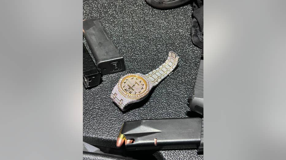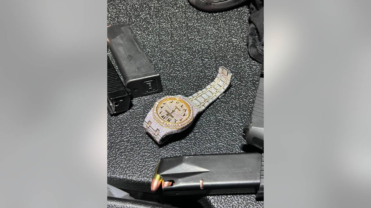 Photo of the watch being sold and weapons used by suspects during Thursday's robbery at the Costco parking lot in Cypress (Precinct 4 photo)