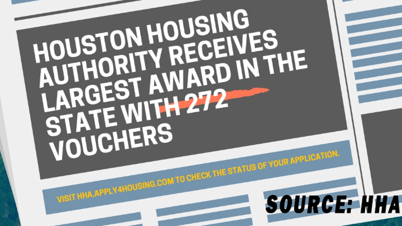 HOUSTON - The Houston Housing Authority has been awarded 272 housing vouchers by the U.S. Department of Housing and Urban Development.