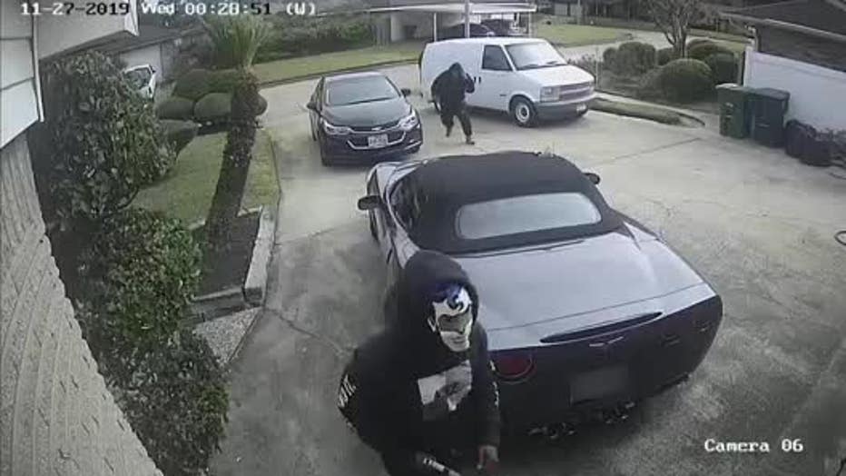 The vehicle stopped and two unknown males reportedly exited and ran up to him while holding handguns. Video shows a third male exit the car and run toward the house. Police say the suspects grabbed the man and dragged him into his house while demanding money.