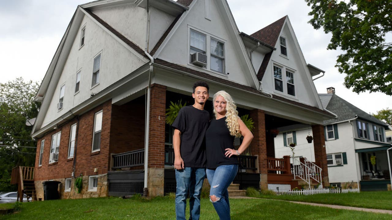 Temple, PA - August 6: Boyfriend and girlfriend Luis Leon and Brooke Schaeffer stand in front of the house they bought together in Temple, Thursday afternoon August 6, 2020. They are first-time homeowners. (Photo by Ben Hasty/MediaNews Group/Reading