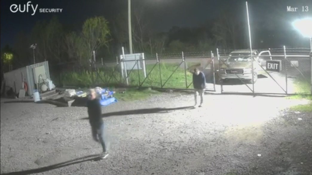 The incident, which unfolded over 12 hours, was captured on surveillance footage. Video shows two men breaking into Sykora's lot on the 15100 block of Waterloo Drive loading stolen items