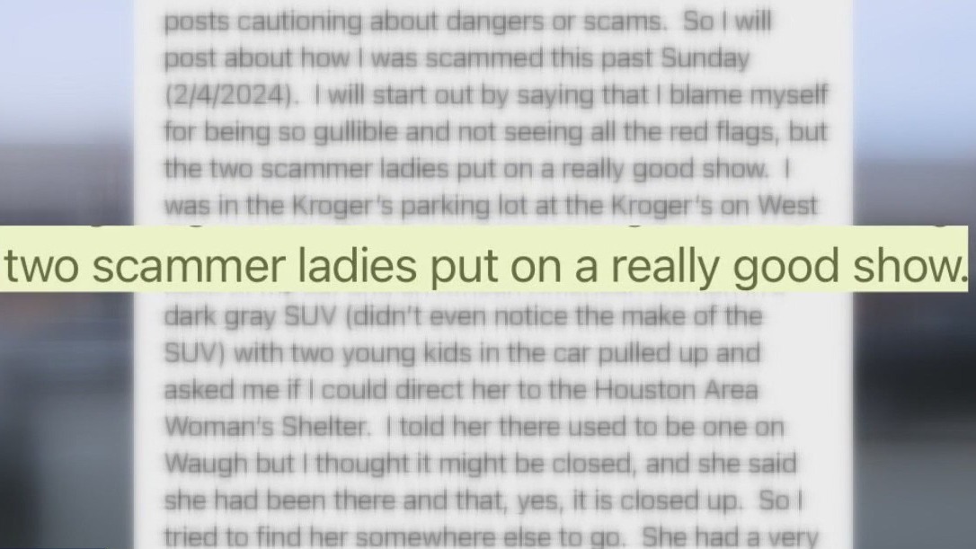 HOUSTON - Several people have posted on Facebook and Reddit warning others to be aware of two women who know how to tug at hearts to get other people's money.