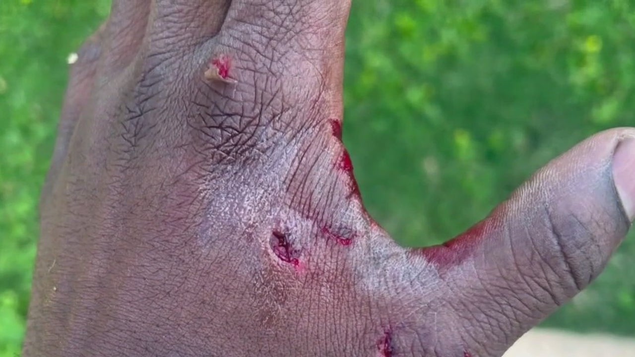 "Maybe five feet away from the door, the dog bites me very sharp, very hard," he said. "I tried to snatch my hand away out of his mouth. It rips almost like paper."