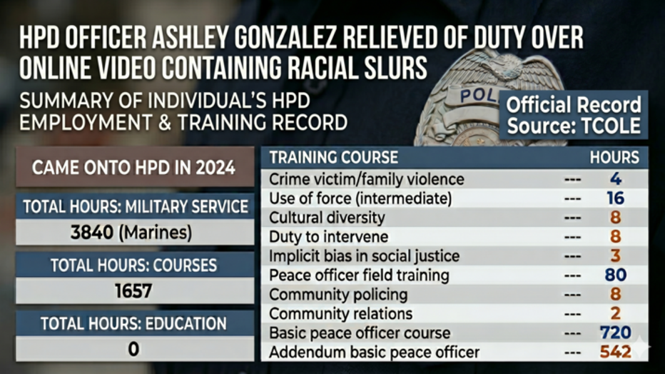 Houston Police say Officer Ashley Gonzalez has been relieved of duty while the department investigates a video sent to FOX 26 by a viewer who alleges the woman in it is Gonzalez.