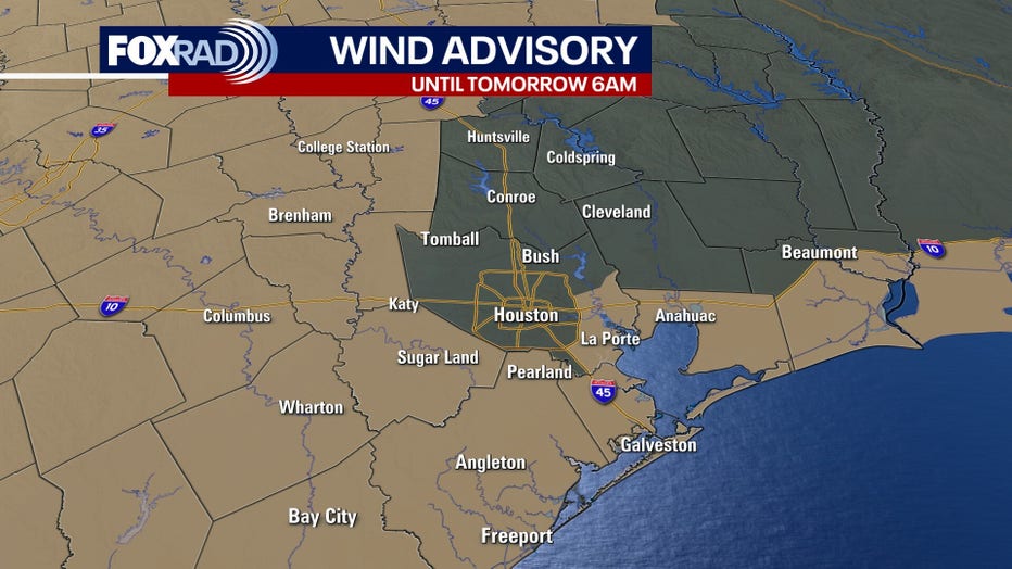 A wind advisory has been issued due to these expected gusts until 6 a.m. Monday.