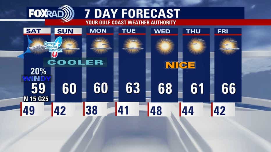 HOUSTON - A stormy night will be on the way for the Houston area until midnight Friday before a chilly Saturday.