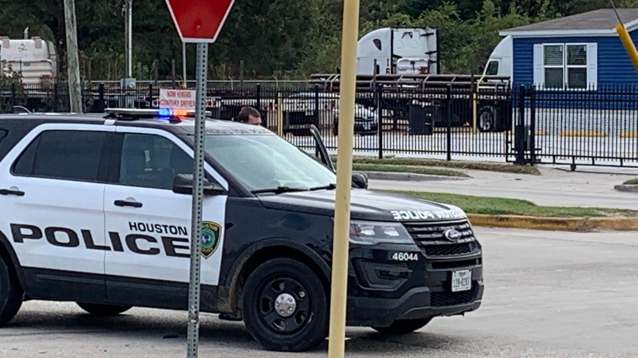 Houston police search for suspects after shots were fired near a patrol station on Ley Road.