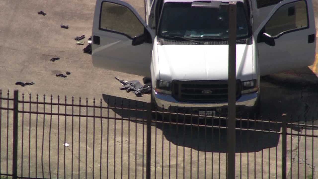 According to Houston police, the other suspect exited the pick-up truck with an AR-15 rifle, and shots were exchanged with SWAT officers.