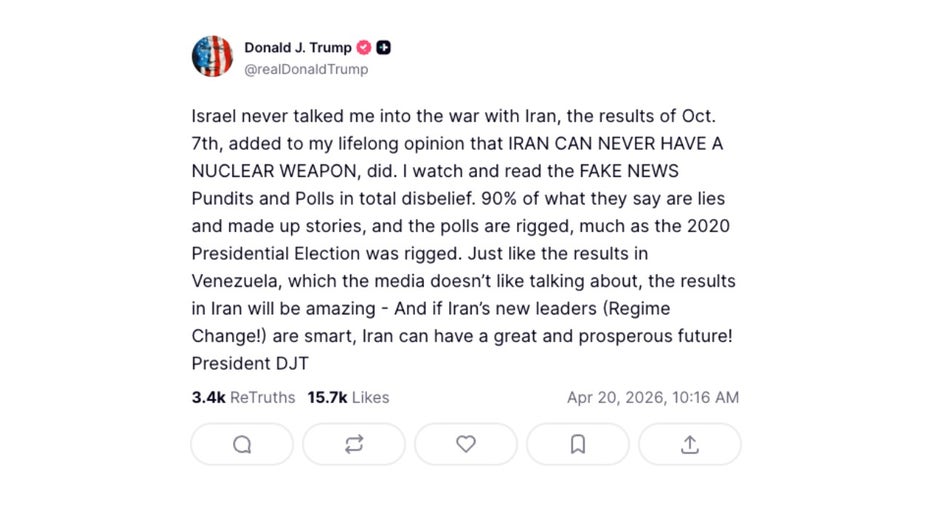 "Israel never talked me into the war with Iran, the results of Oct. 7th, added to my lifelong opinion that IRAN CAN NEVER HAVE A NUCLEAR WEAPON," Trump posted.