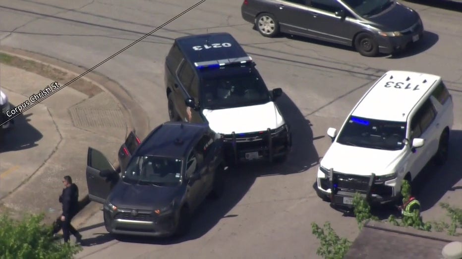 Officials say a female suspect in a grey Toyota led authorities on a chase which soon came to an end near Lathrop and Corpus Christi Street.