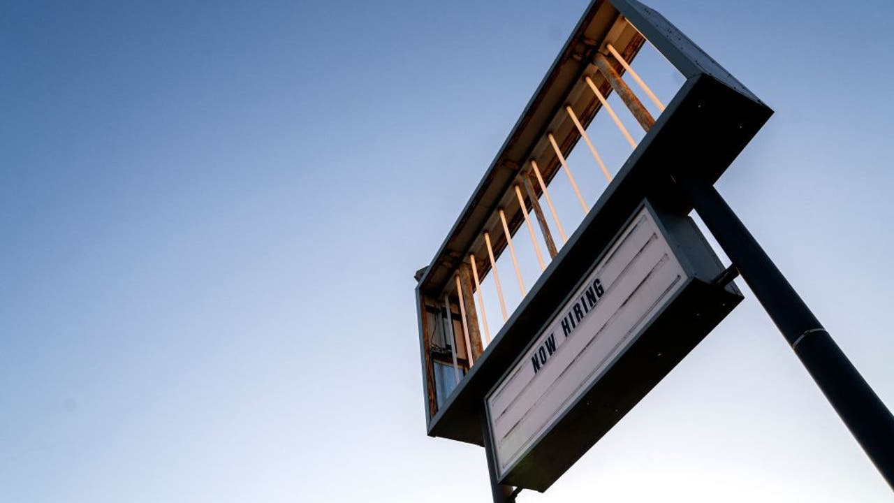 A Now Hiring sign is displayed in front of a restaurant in Rehoboth Beach, Delaware, on March 19, 2022. (Photo by STEFANI REYNOLDS/AFP via Getty Images)