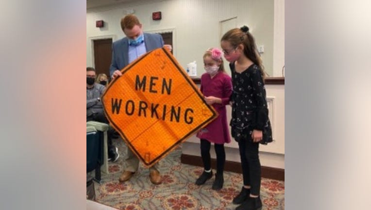 McFeely said the city actually had a leftover "men working" sign in the city’s storage from years ago. After dusting it off, the city gave the sign to the sisters.