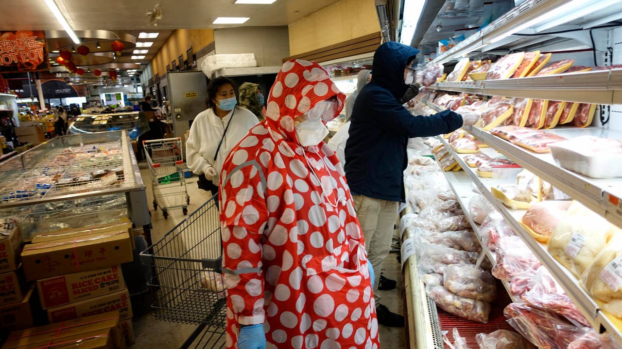 FILE - People wearing face masks shop at a Chinese supermarket amid the coronavirus outbreak on April 20, 2020 in New York City.