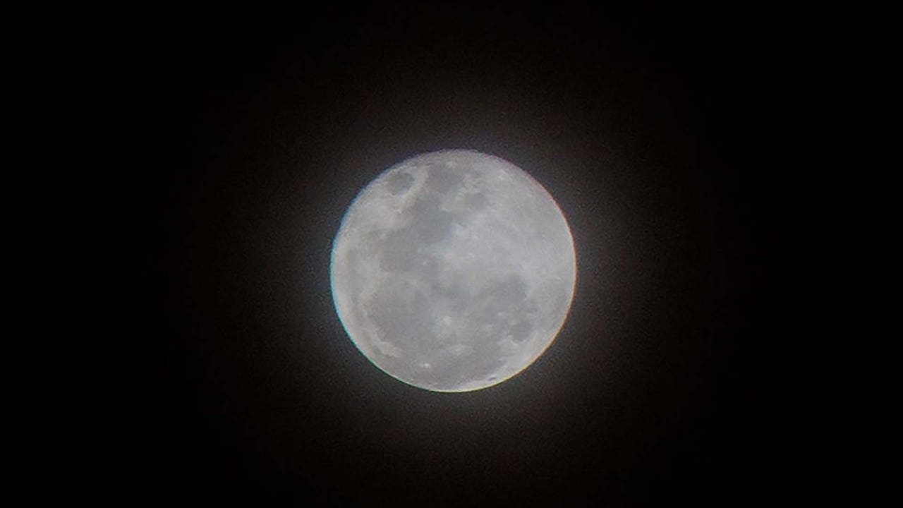FILE - A view of a full moon is seen rising on Oct. 21, 2021 in Tanjungsari, Sumedang Regency, Indonesia.