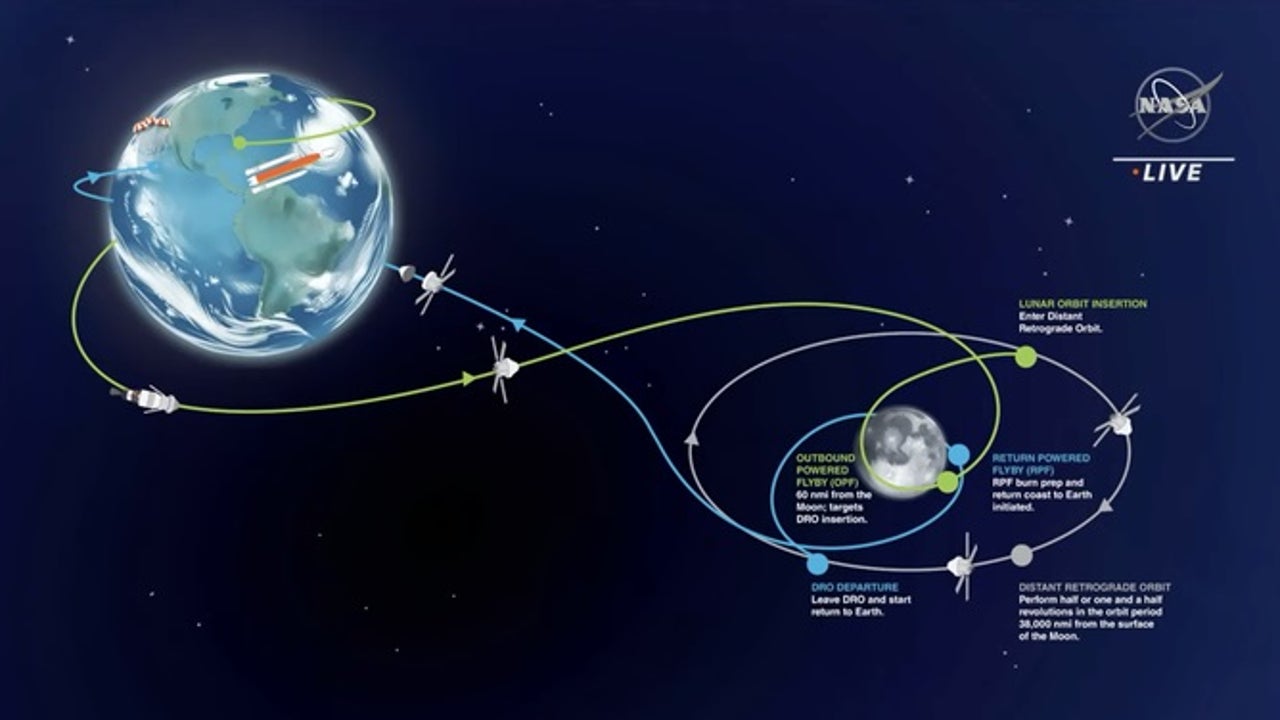 "We'll be able to see the entire journey from the Earth to the moon sped up," Bailey said. "But the real-time parts of it … having video, especially if we can get live video of lunar orbit insertion …. and just orbiting the moon and see and seeing the spaceship with the moon in the background, there's going to be some tremendous photo opportunities here."