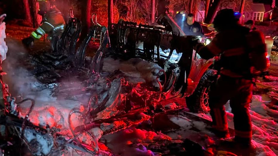 Montgomery County firefighters put out car fire allegedly started by used fireworks (Photo credit: Montgomery County Fire Marshal's Office)