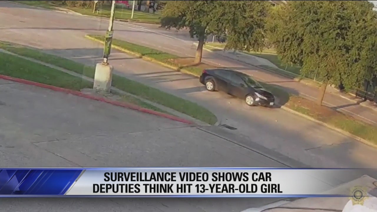 Harris County deputies hope new surveillance video helps them find the driver who hit a 13-year-old girl, critically injuring her, and kept driving.
